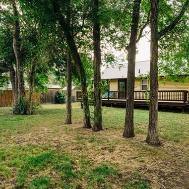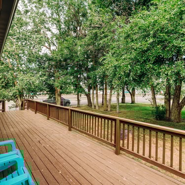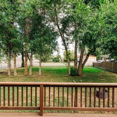 Big corner lot, fenced in, with a large deck.