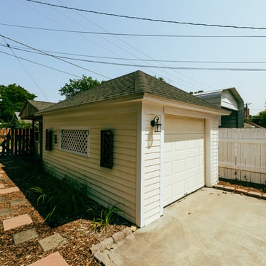 Fenced back yard with alley access, Garage and shed have lights and outlets